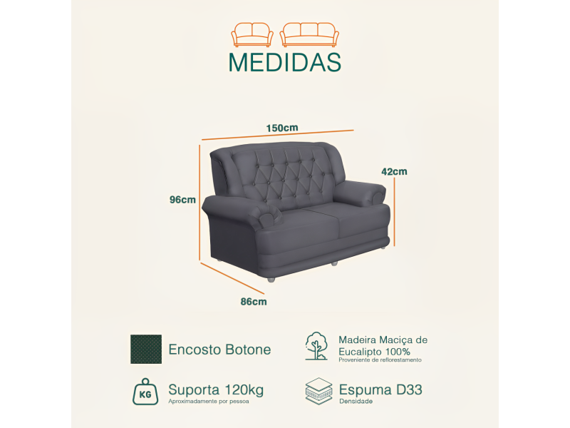 Sofá Filadélfia traz o conforto e comodidade com design clássico do estilo botonê. Sofisticado e elegante para combinar com qualquer ambiente atemporal. O Sofá Filadélfia é o encontro da praticidade e elegância de um conjunto de estofado com a sofisticação de um design clássico. Além disso, o sofá Filadélfia é desenvolvido com espuma D33 para maior qualidade e durabilidade para você.