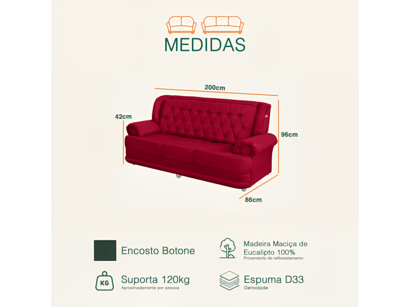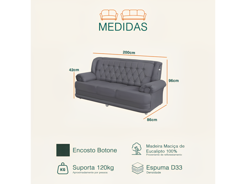 Medidas do sofá Filadélfia: